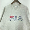 Vintage Fila Spell Out Gray Sweatshirt Size L Crew Neck